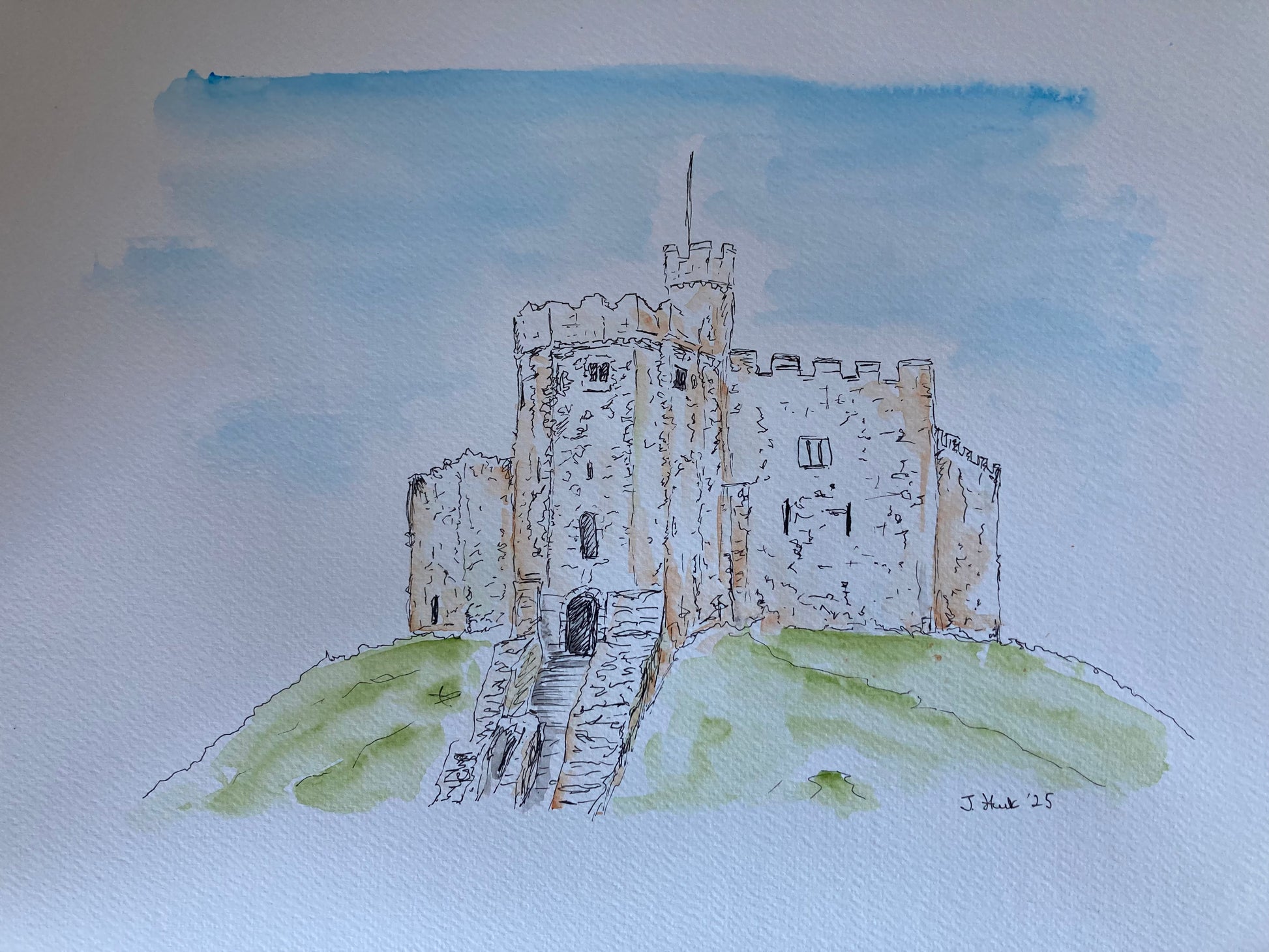 A view of the mott and bailey inside Cardiff Castle - on an A3 sheet.