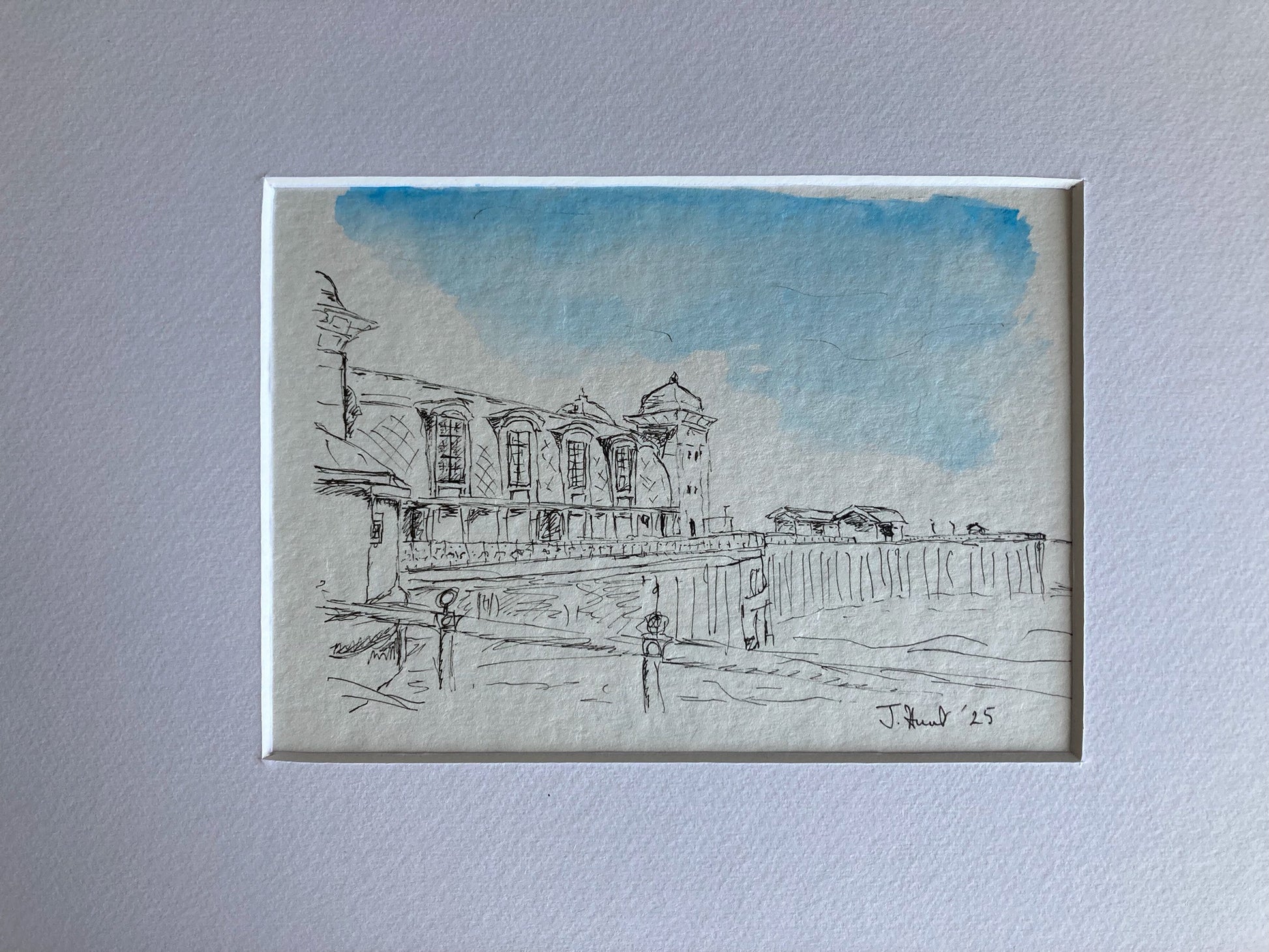 An original ink pen sketch of the Penarth Pier - A4 size - framed.